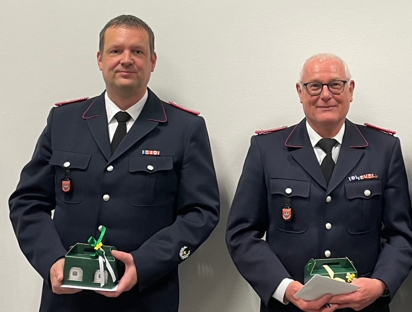 Für 30 Jahre aktiven Dienst wurden Holger Martinsteg und Wolf-Oliver Krohn geehrt und für 40 Jahre aktiven Dienst Jörg Schuldt.