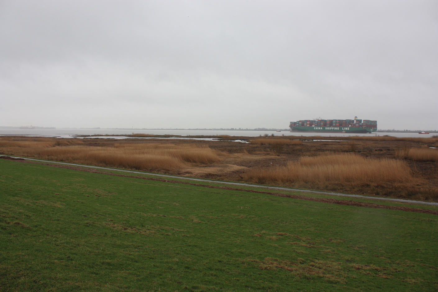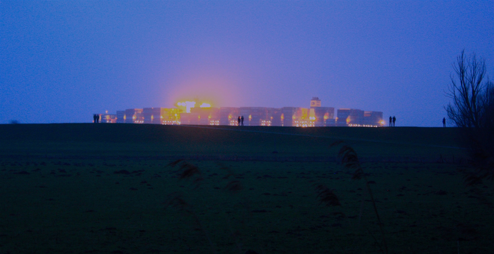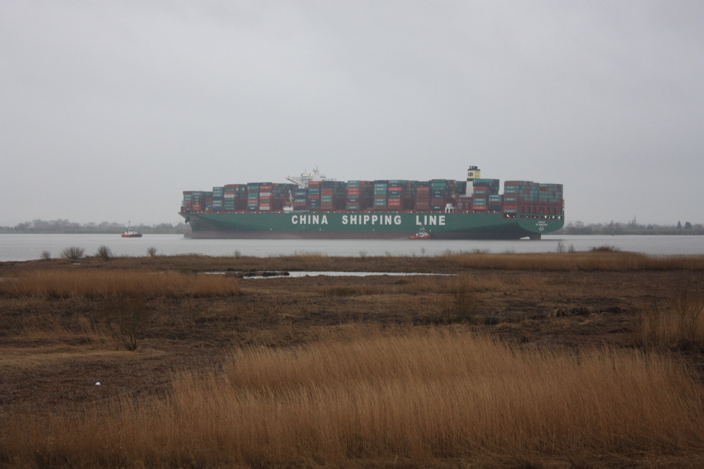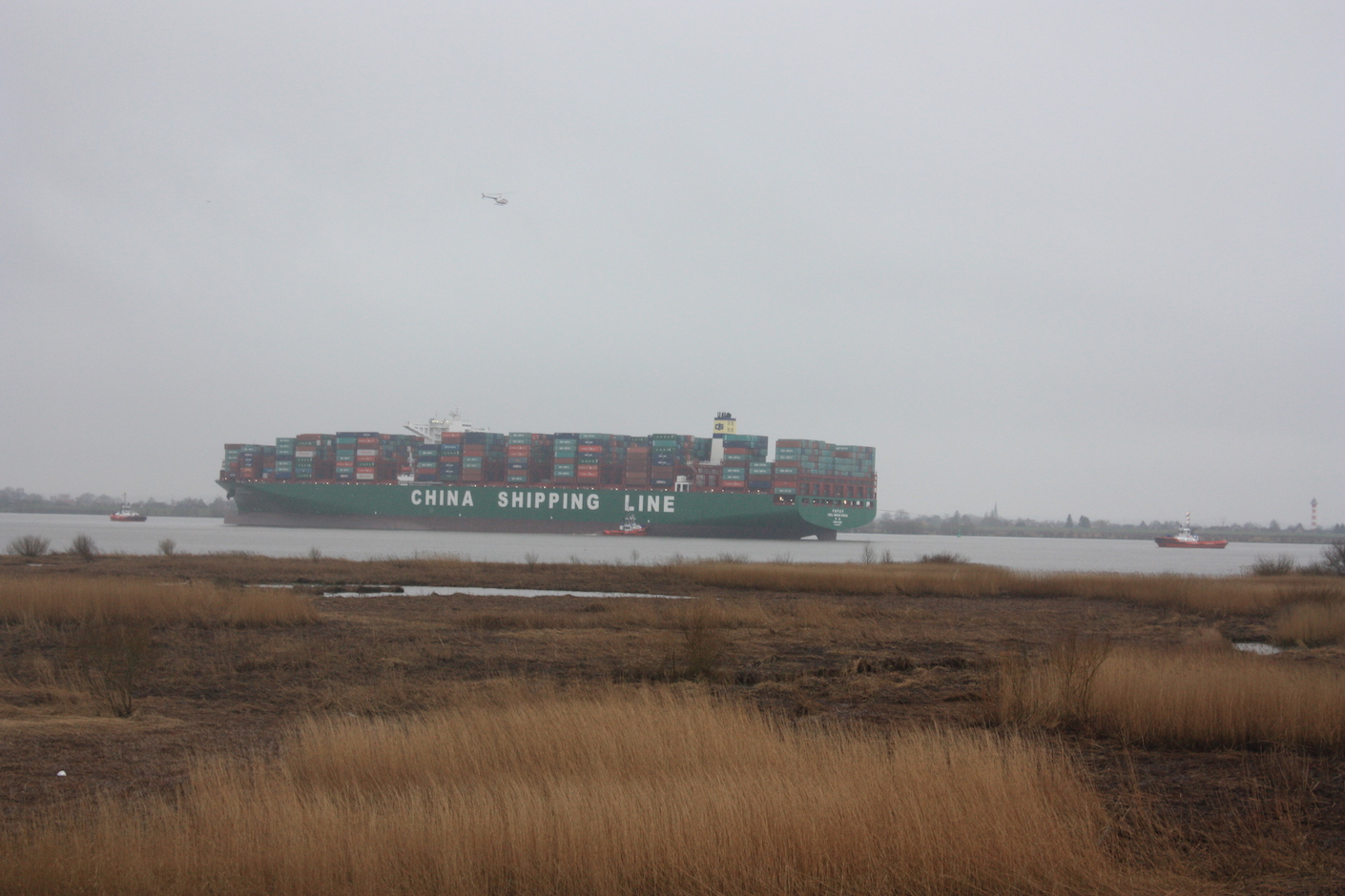 Offenbar ist die Bergung fehlgeschlagen. Mittlerweile hat die Ebbe eingesetzt und das Containerschiff liegt unverändert vor Hetlingen fest.