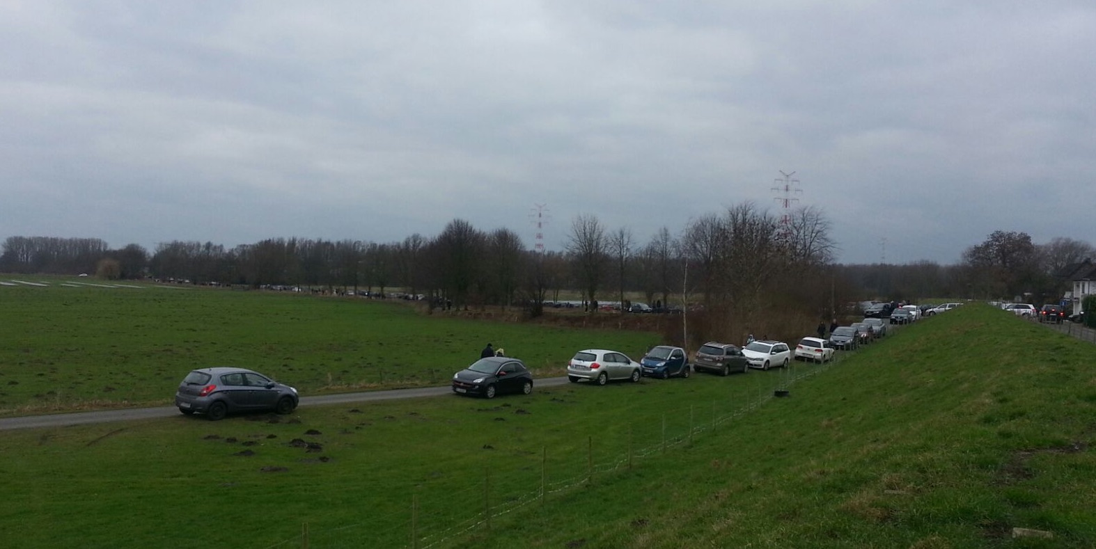 Zahlreiche Schaulustige fanden sich am Samstag ein, um das auf Grund gelaufene Containerschiff aus der Nähe zu sehen. Die parkenden Autos stauten sich bin in das Gemeindegebiet.