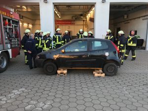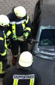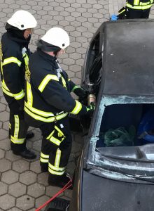 Am 08. Mai übten wir an der Feuerwache das Retten verunfallter Personen aus einem KFZ. In diesem Jahr waren bereits zwei dieser Einsätze abzuarbeiten, sodass die Thematik für uns sehr aktuell ist. Es wurden verschiedene Möglichkeiten der Sicherung eines Unfallfahrzeugs besprochen. Das sichere Entfernen von Front- und Seitenscheiben wurde intensiv geübt. Zudem wurde die Türöffnung der Fahrer- und Beifahrertüren, sowie das Abnehmen des kompletten Fahrzeugdaches durchgeführt.