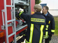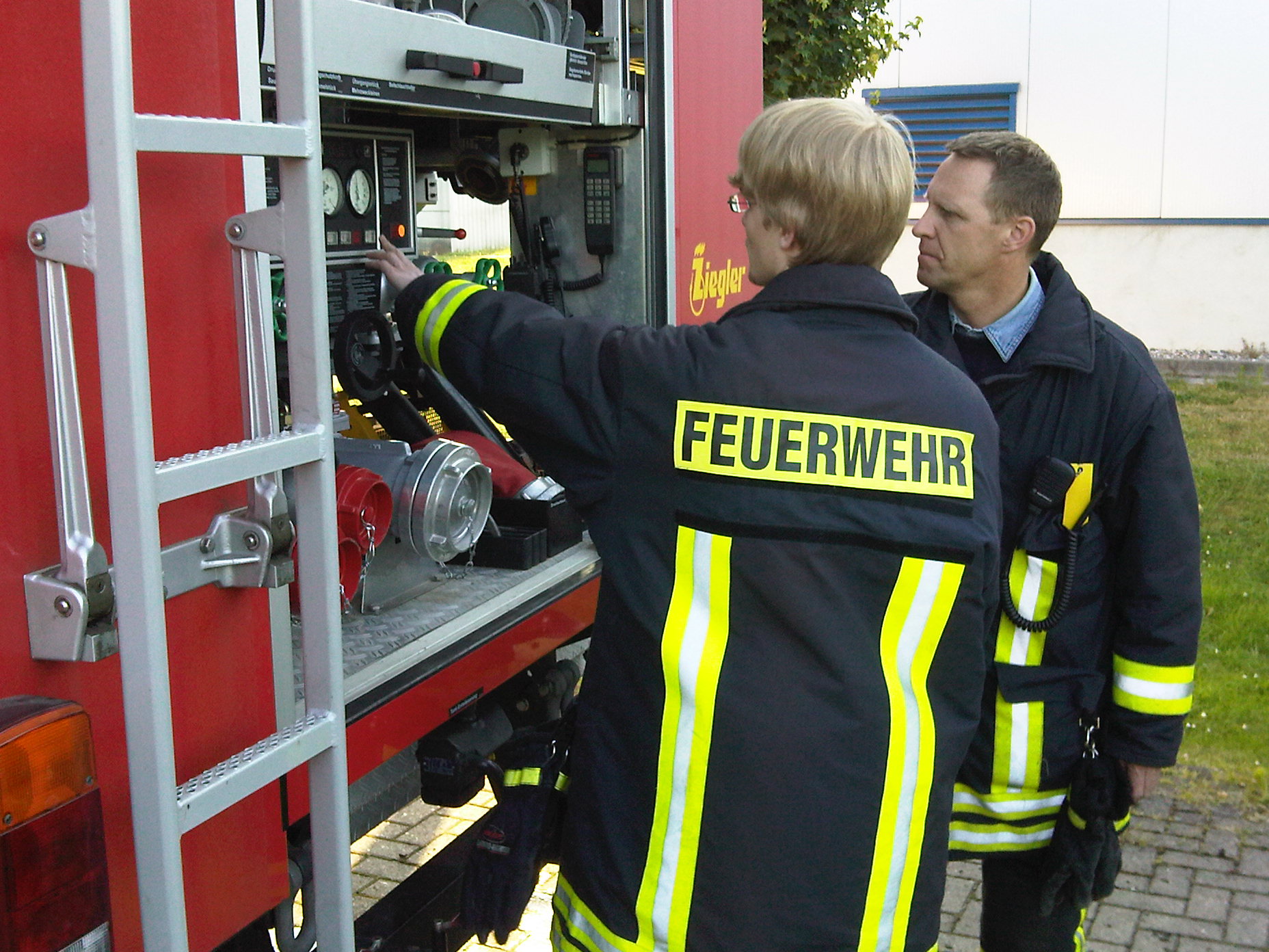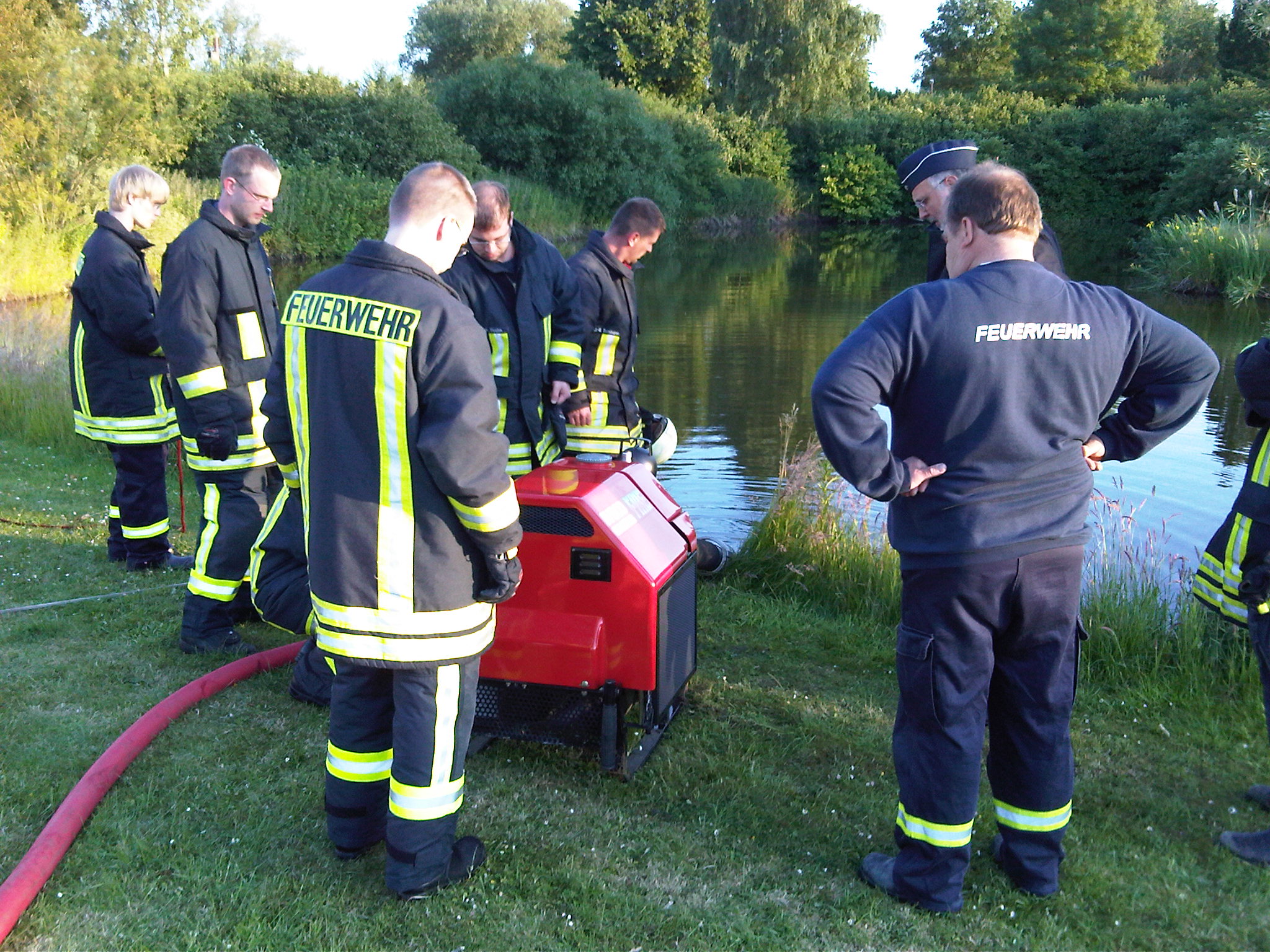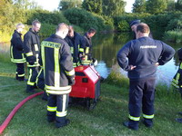 Heute Abend standen sie Fahrzeugpumpen und die TS im Mittelpunkt der Ausbildung. Geübt wurde die Wasserversorgung von der offenen Wasserstelle und aus dem Tank.