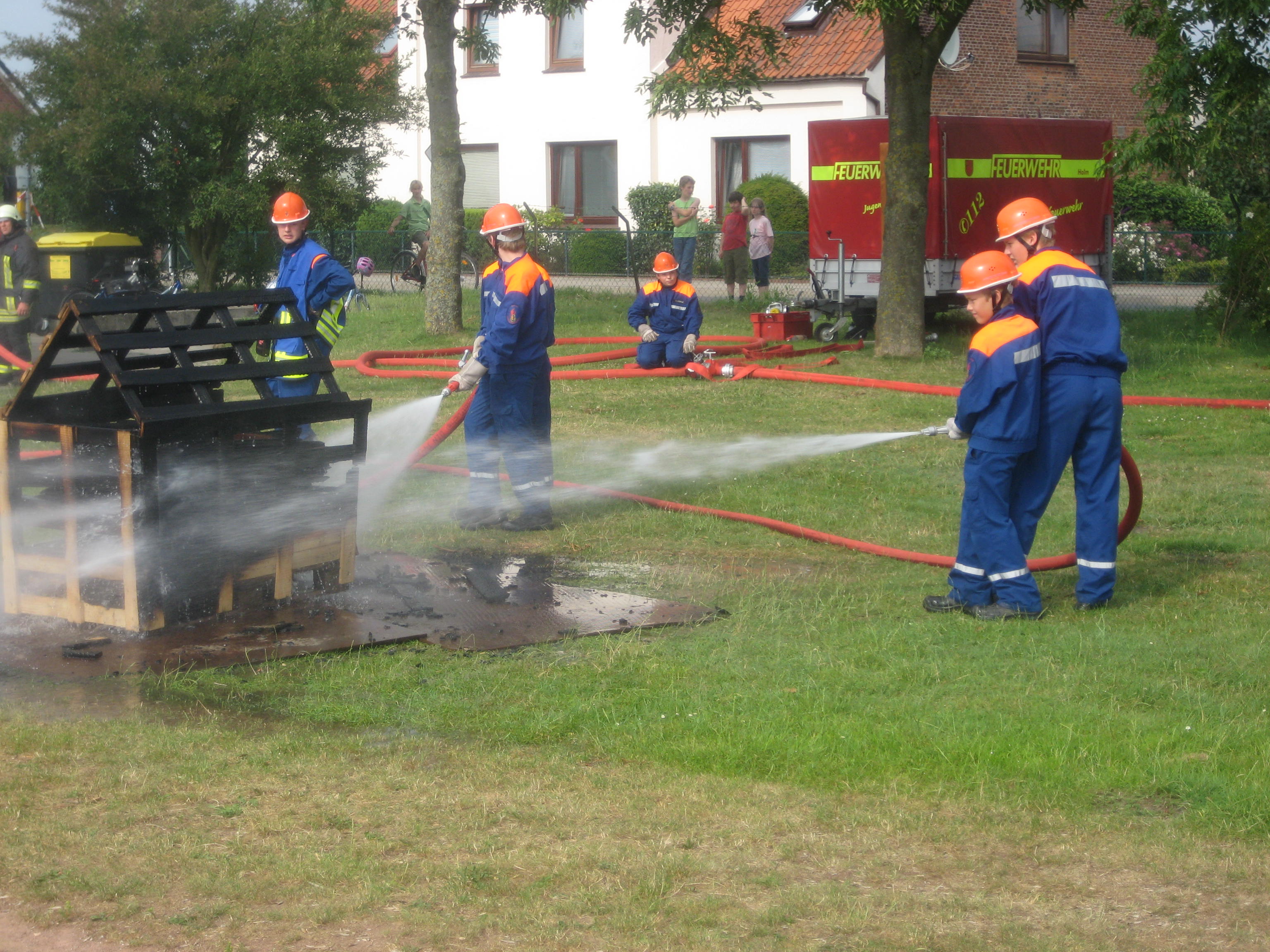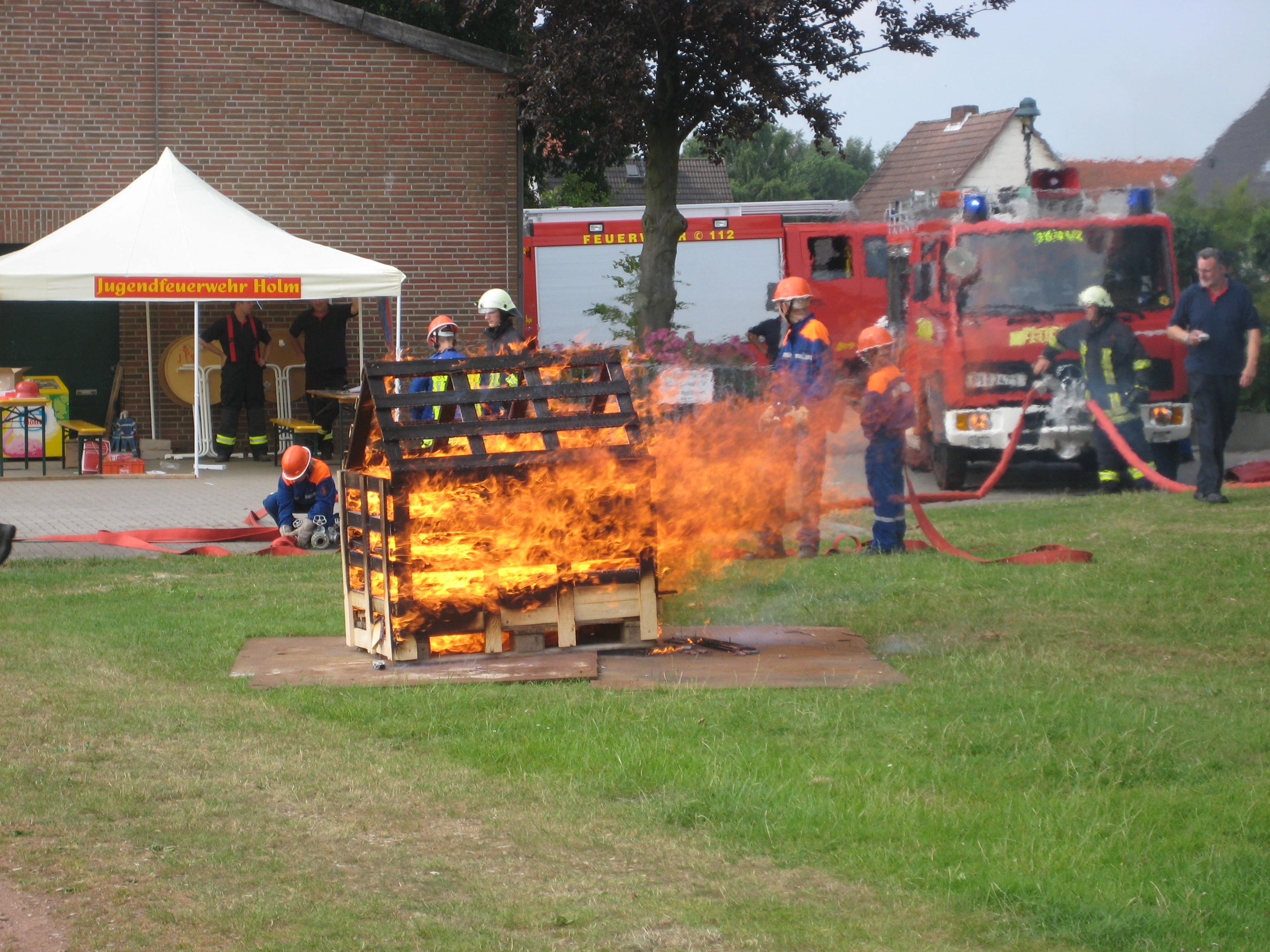 Erstmals in diesem Jahr waren die „Fire Eagles“ aus Holm mit einer sehenswerten Übung dabei. Die Nachwuchs-Brandbekämpfer hatten den Vollbrand in Rekordzeit gelöscht.